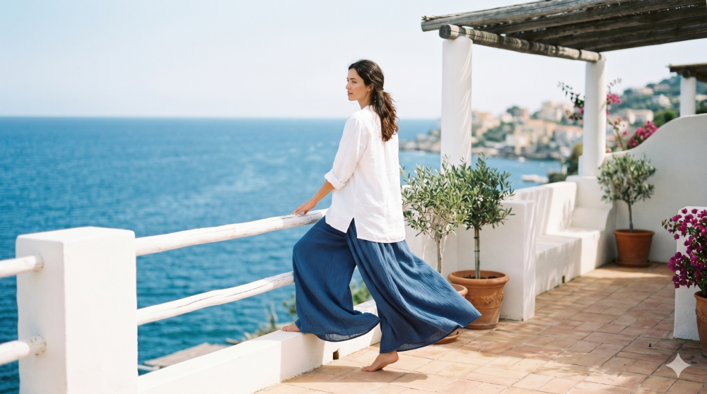 İtalyan yazlık stilini yansıtan hafif müslin kumaşı sayesinde üzerinizde yokmuş hissi yaratır. Ekstra geniş paça tasarımı yürüyüşünüze zarif bir ahenk katar.